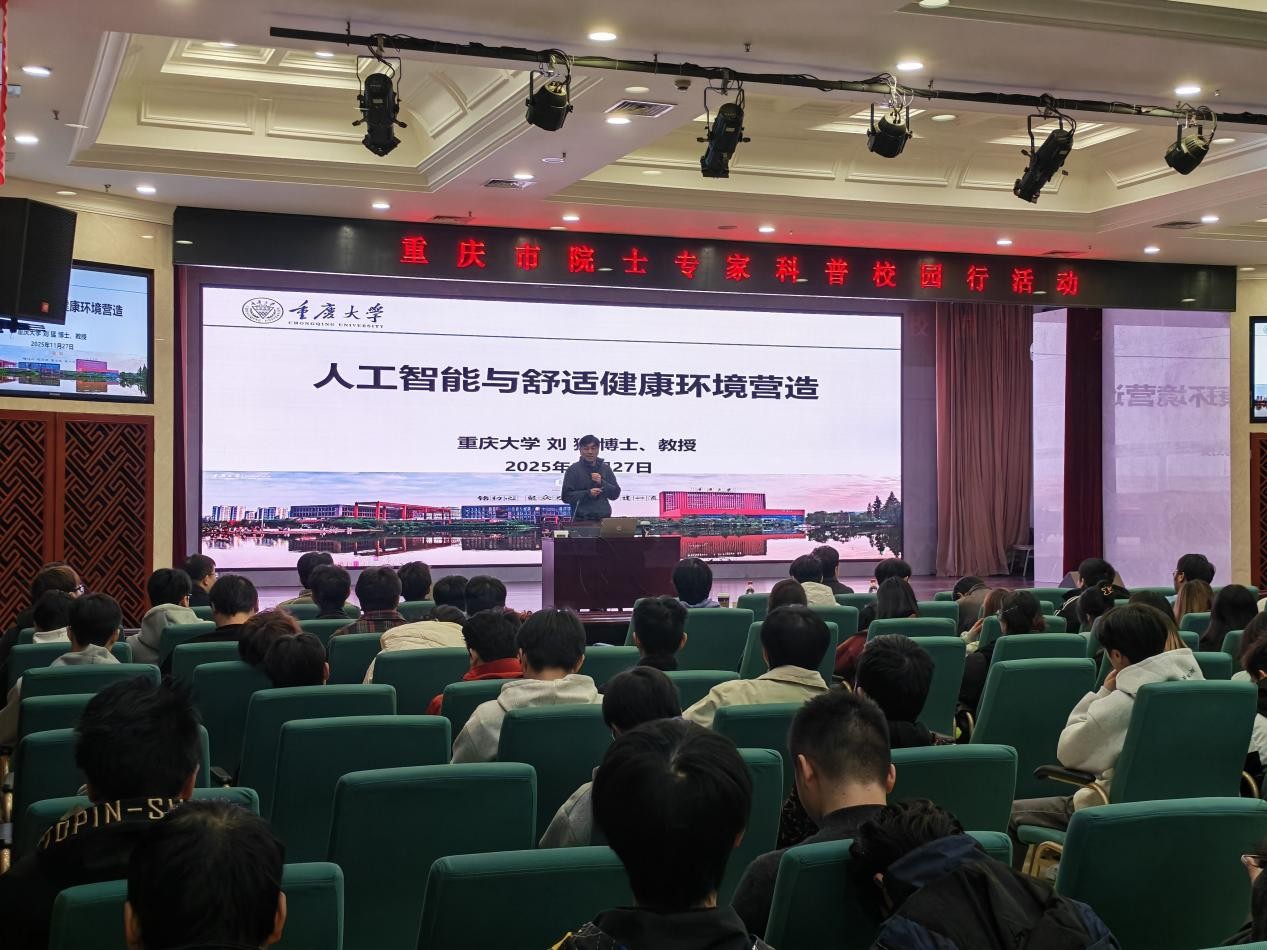 为拓展学生科技视野、弘扬科学精神、营造校园创新氛围,11月27日,作为重庆财经学院第四届“智汇杯”科技活动周重要组成部分的“院士专家进校园专题讲座”在学术报告厅成功举办。本次活动特邀重庆大学教授、本科生院院长刘猛担任主讲,以“人工智能与舒适健康环境营造”为主题,为现场师生带来一场融合前沿技术与现实应用的学术盛宴。